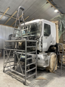 Uusi työntekijämme Jarno on vannoutunut SISU-mies. Jarno täytti vuosia ja yllätimme hänet viemällä synttärijuhliin hänen tulevan ajokkinsa; vanhan SISU-kuorma-auton, joka peruskorjattiin täysin.